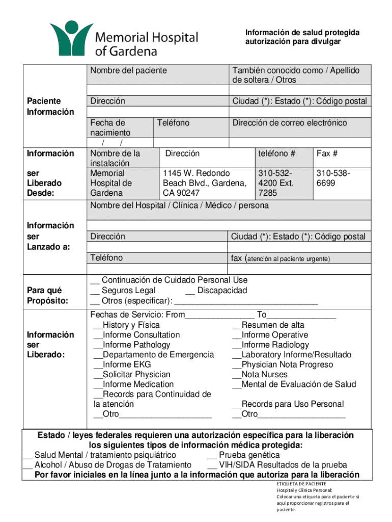 Get the free PDF Autorizacin para el Uso o Divulgacin de Informacin Protegida ...