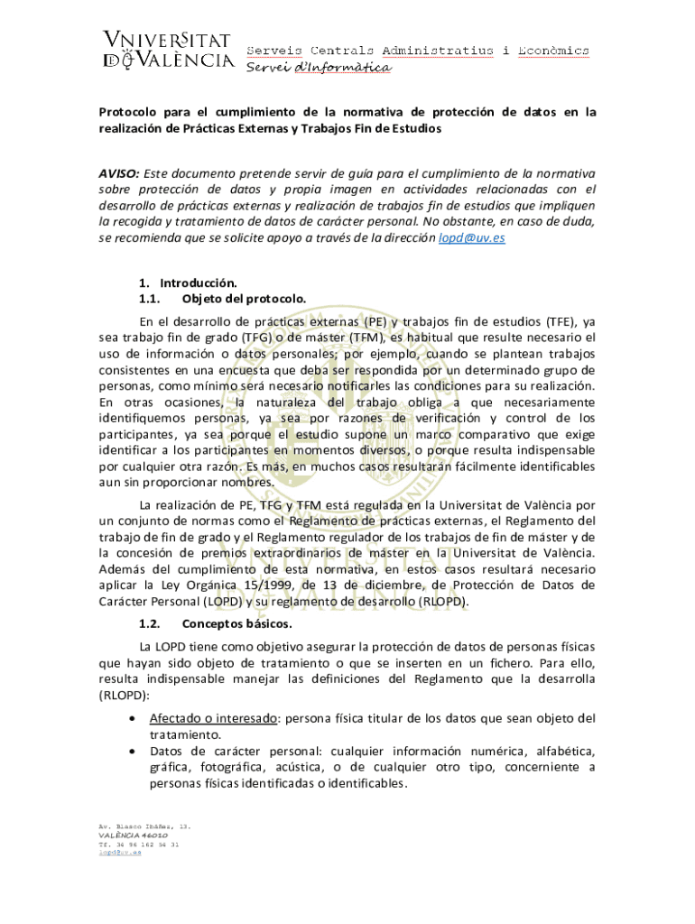 Protocol para El compliment DE la normative DE protection DE dates en la realization DE Practices External y Barbados Fin de Estudios AVIS: Ester document pretend server de GUA para El compliment