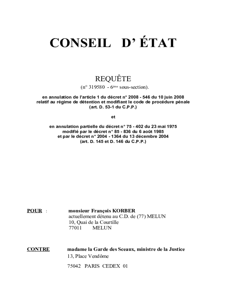 CONSENT D TAT REFUTE (n 319580 6me sous section×. En annulation DE article 1 Du crew n 2008 546 Du 10 join 2008 related AU regime DE detention ET modified LE code DE procedure pale (art. D. 531 Du