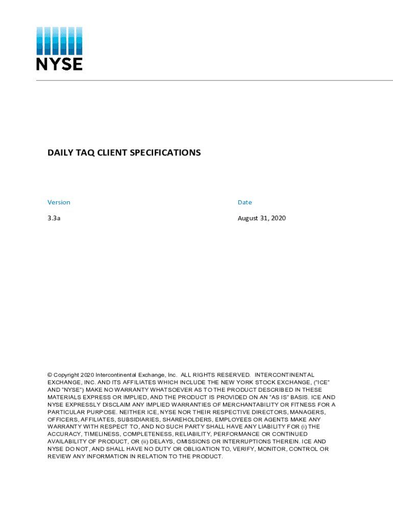 Get the free DAILY TAQ CLIENT SPECIFICATIONS - New York Stock Exchange