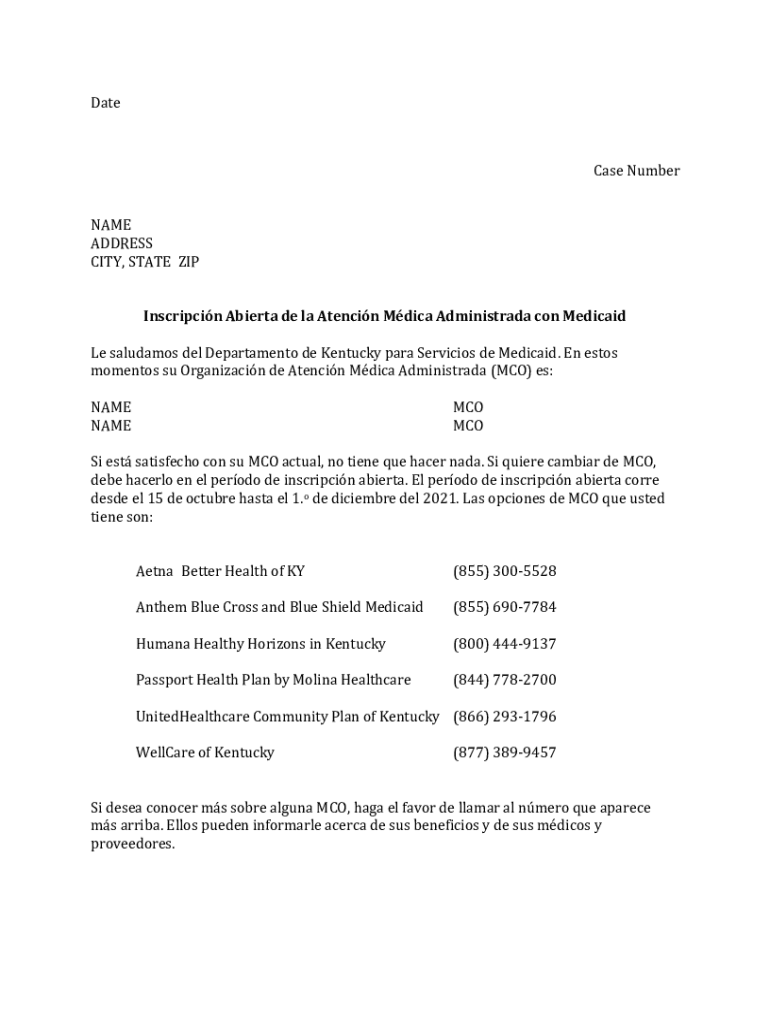 Date Case Number NAME ADDRESS CITY, STATE ZIP Inscription Alberta de la Stencil Mica Administrate con Medicaid Le Salamis Del Department de Kentucky para Services de Medicaid. En Estes moments SU
