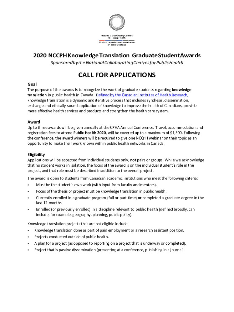 Get the free nccph.ca images uploads2020 NCCPH Knowledge Translation GraduateStudent Awards