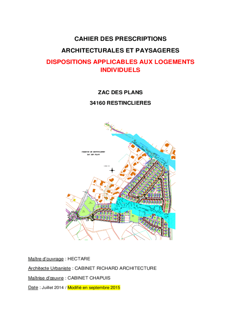 CASHIER DES PRESCRIPTIONS ARCHITECTURAL ES ET PASSAGES DISPOSITIONS APPLICABLE AUX MOVEMENTS INDIVIDUELSZAC DES PLANS 34160 RESTINCLIERESMatre courage : HECTARE Architect Urbanist : CABINET RICHARD