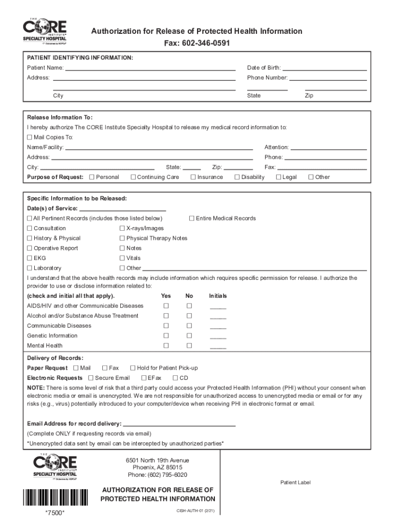 Get the free PDF Authorization for Release of Protected Health Information Fax