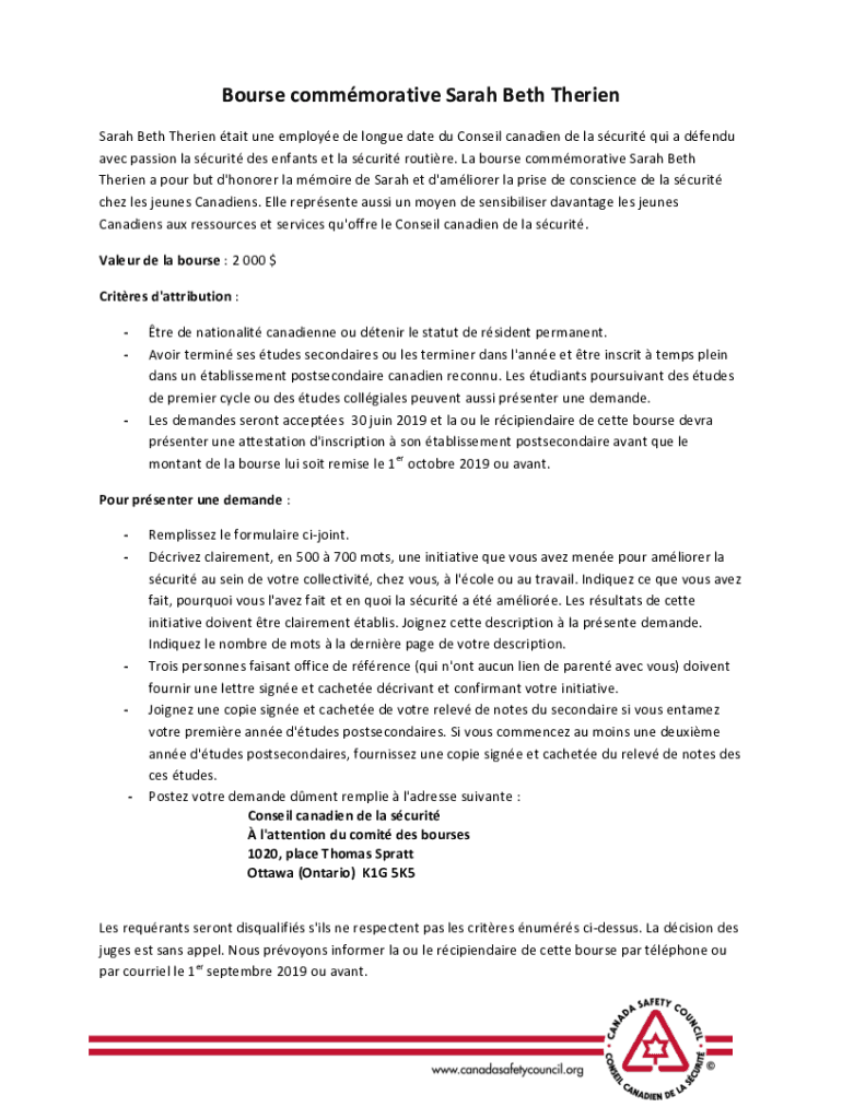 Course commemorative Sarah Beth TherienSarah Beth Therein tai tune employed DE tongue date Du Conrail Canadian de la security quit a dfenduavec passion la security DES infants ET la security routine.