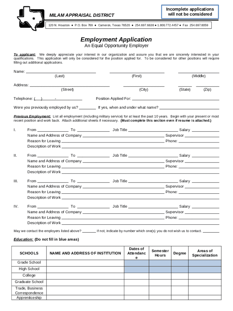 Instructions for the form PDF EMPLOYMENT APPLICATION - The Glenview at Pelican Bay