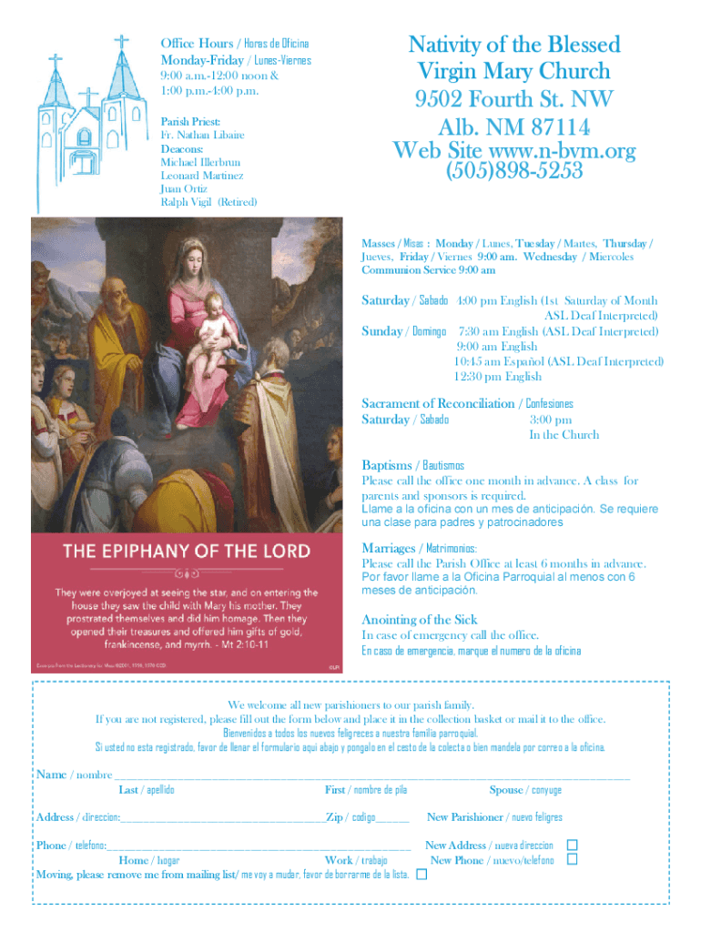 Get the free PDF Nativity of the Blessed Virgin Mary Church - Parishes Online