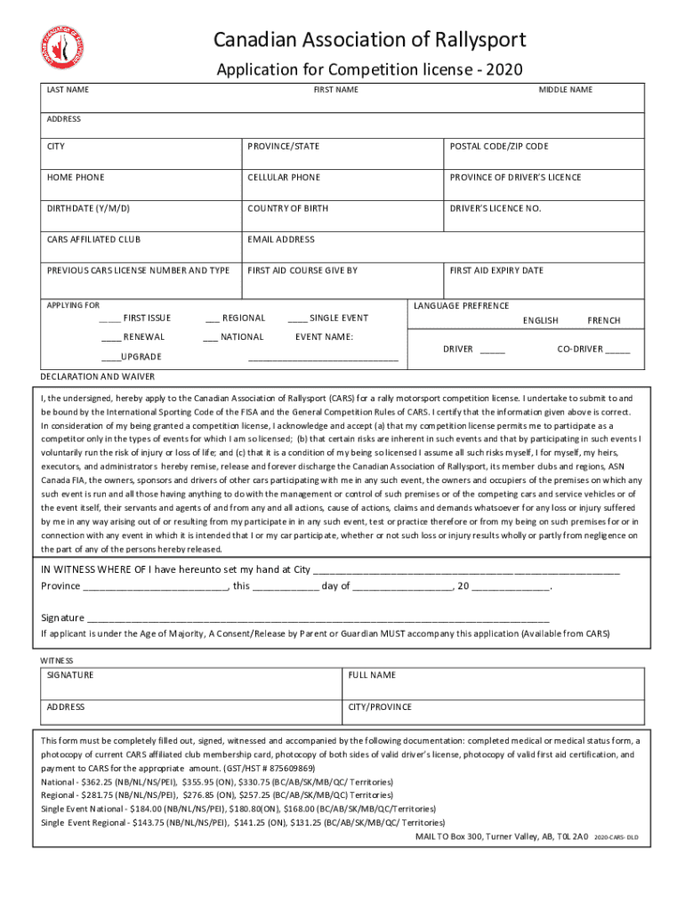 Attached is the 2020 CARS license application. Please complete the form, sign it and have it witnessed. When applying for you license, please include the following:Vows trouvère la suite vote formula