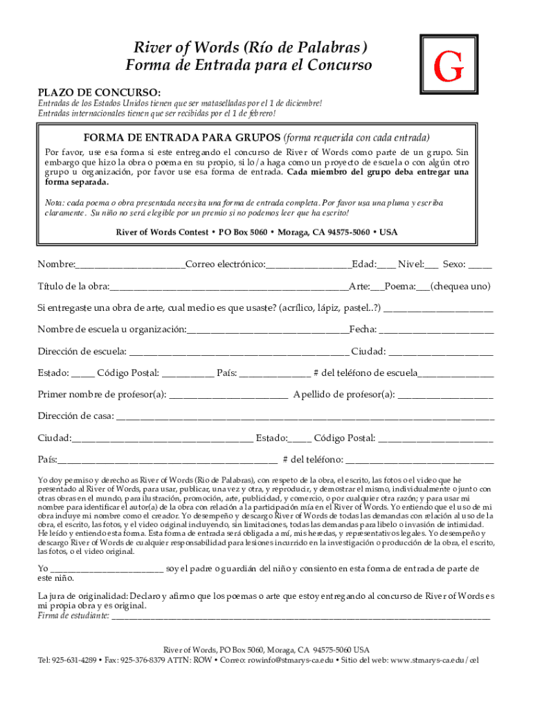 Get the free www.stmarys-ca.edusitesdefaultRiver of Words (Ro de Palabras) Forma de Entrada para ...