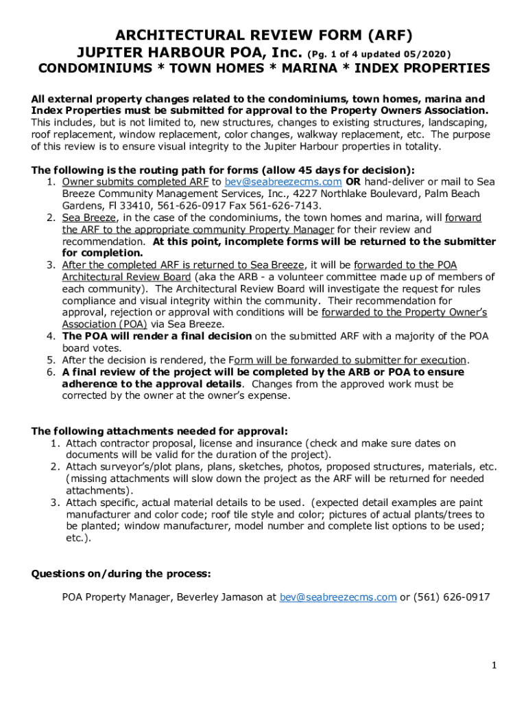 Get the free seabreezecms.com wp-content uploadsARCHITECTURAL REVIEW FORM (ARF) JUPITER HARBOUR P...