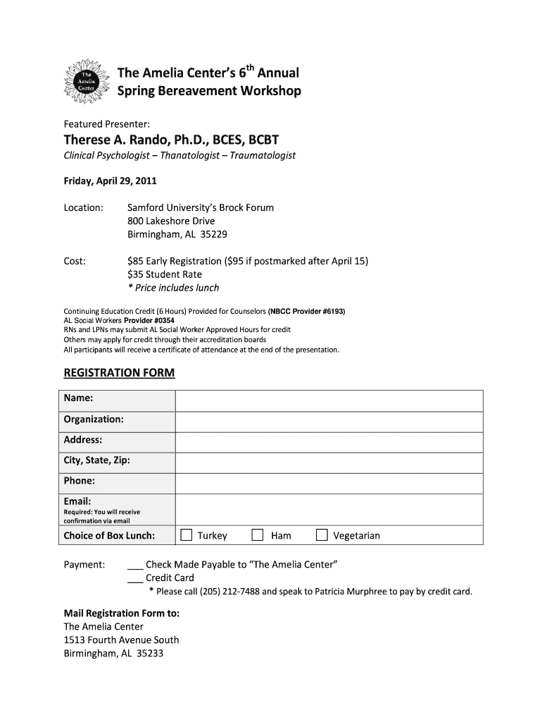 Get the free The Amelia Center s 6 th Annual Spring Bereavement Workshop ... - naswal