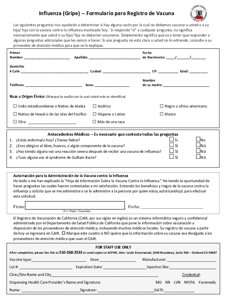 Influenza (Gripe) Formulation para Registry de Vacuna Las migraines presents nos Sudan a determiner is hay Luna ran POR la coal no deb emos vascular a used o a SU Hilo/ HIA con la lacuna contra la