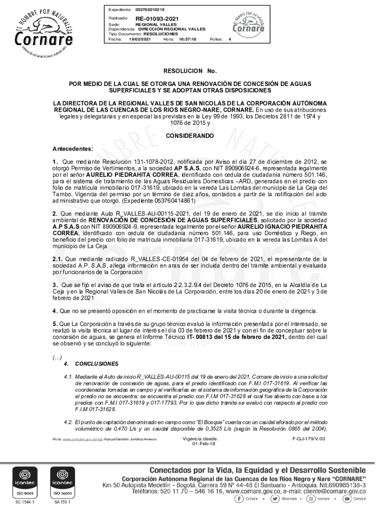 Expedient: 053760210215 Radical:RE010932021Sede: REGIONAL VALLEY Dependence: DIRECTION REGIONAL VALLEY Tip Document: RESOLUTIONS Tech: 19×02/2021 Hora: 16:57:18Folios:4RESOLUCION No. POR MEDIA DE