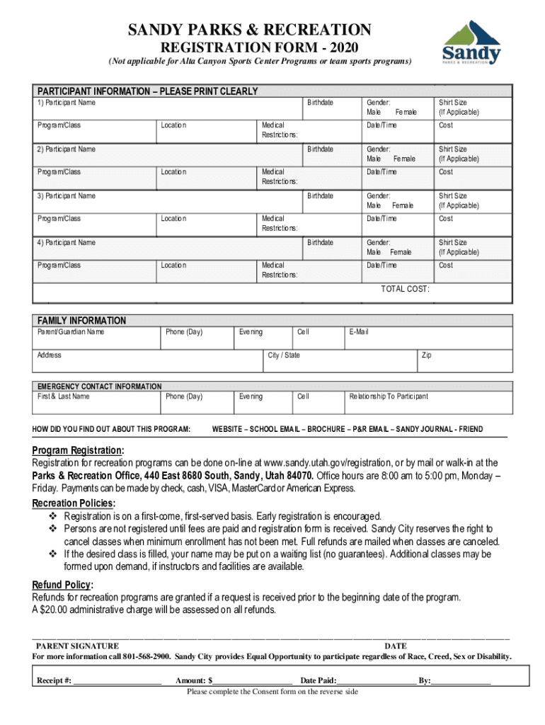 Get the free PDF sandy parks & recreation - registration form - ActivityReg
