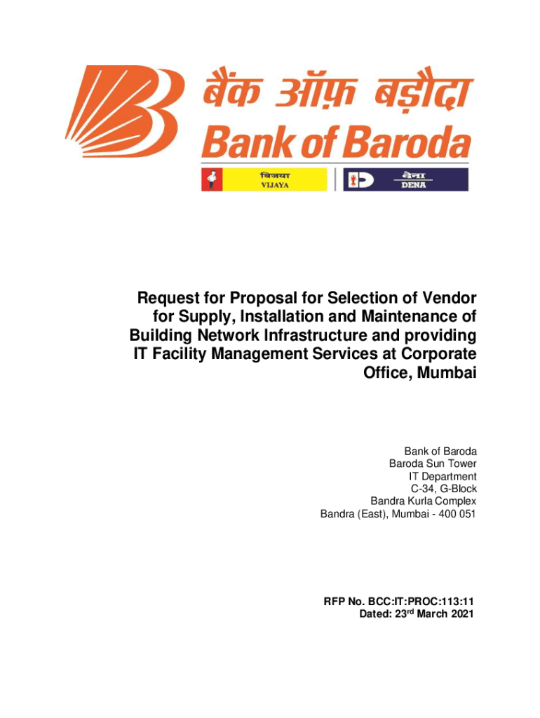 Request for Proposal for Selection of Vendor for Supply, Installation and Maintenance of Building Network Infrastructure and providing IT Facility Management Services at Corporate Office, Multibank