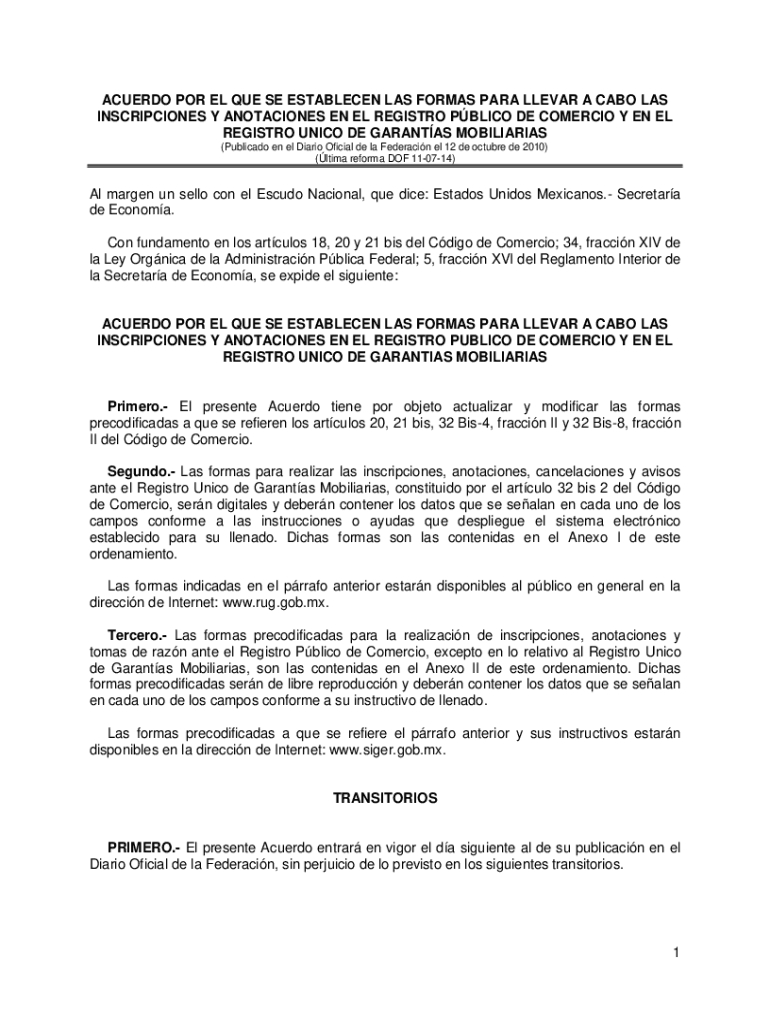 Get the free acuerdo por el que se establecen las formas para llevar a ...