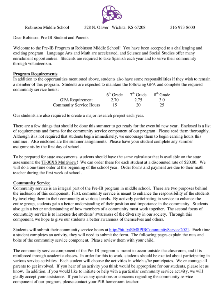 Robinson Middle School328 N. Oliver Wichita, KS 672083169738600Dear Robinson Press Student and Parents: Welcome to the Press Program at Robinson Middle School! You have been accepted to a challenging