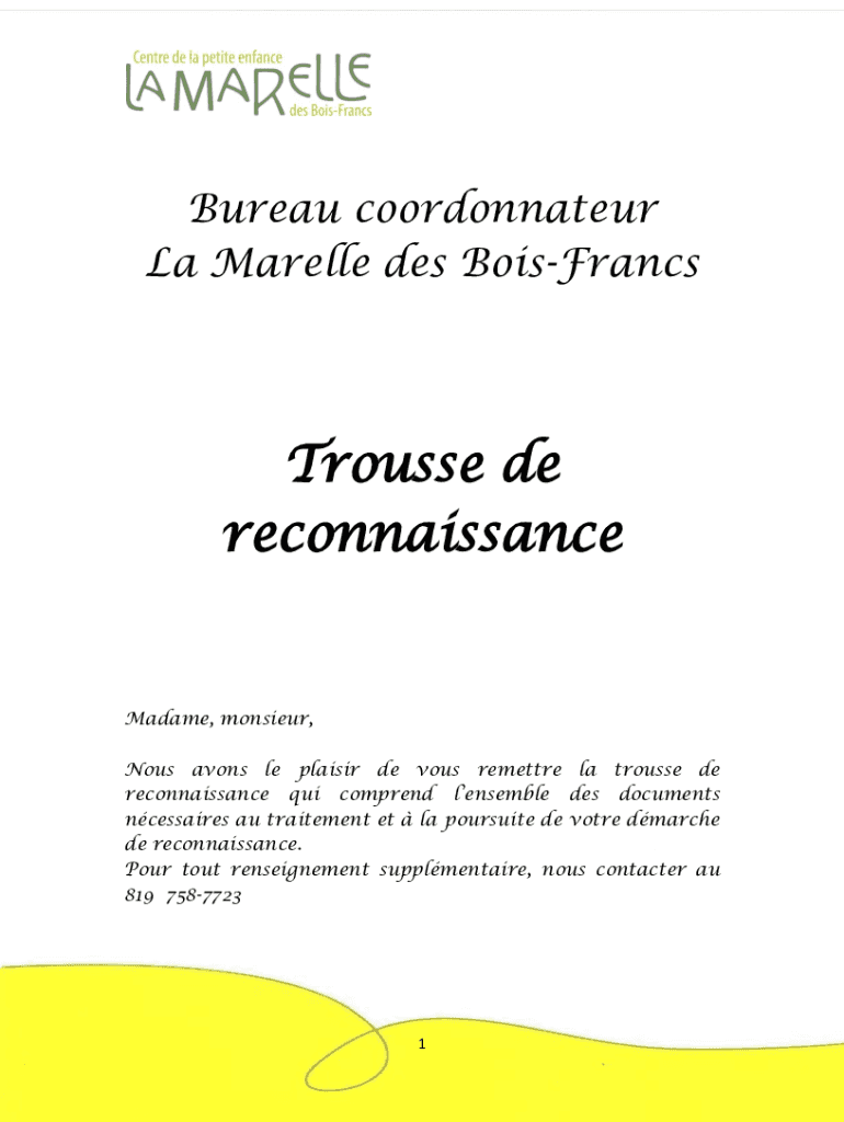 Bureau coordonnateur La Marble DES BoisFrancsTrousse de reconnaissanceMadame, monsieur, Nous Avon LE plainer DE vows resettle la trouble DE reconnaissance quit comp rend ensemble DES documents necessaries