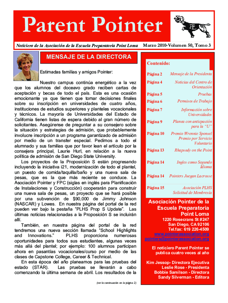 Parent Pointer Notifier DE la Association de la Estela Preparatory Point Lombardo 2010Volumen 50, Too 3MENSAJE DE LA DIRECTOR Contend: Estimates families y amigos Pointer: Maestro campus continua