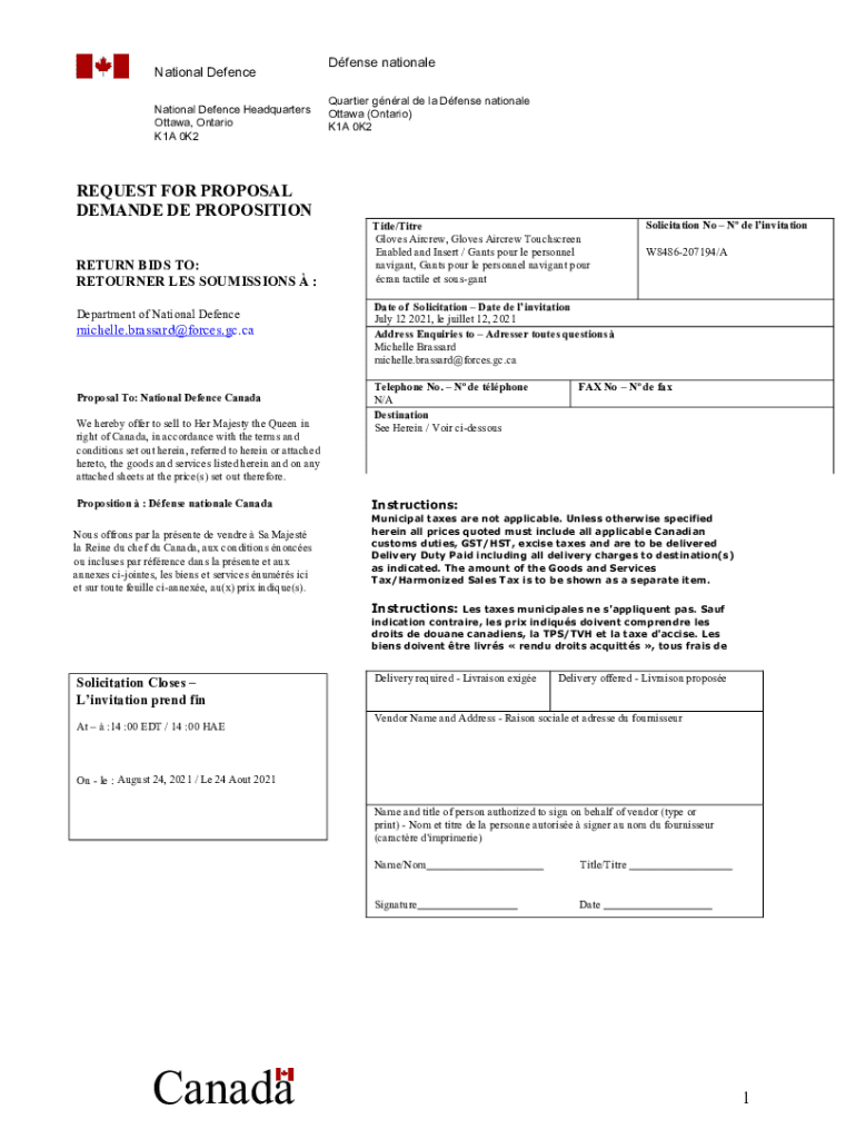 National Defense Headquarters Ottawa, Ontario K1A 0K2Dfense national Quarter gnarl DE la Defense national Ottawa (Ontario) K1A 0K2REQUEST FOR PROPOSAL DEMAND DE PROPOSITION RETURN BIDS TO: RETURNER