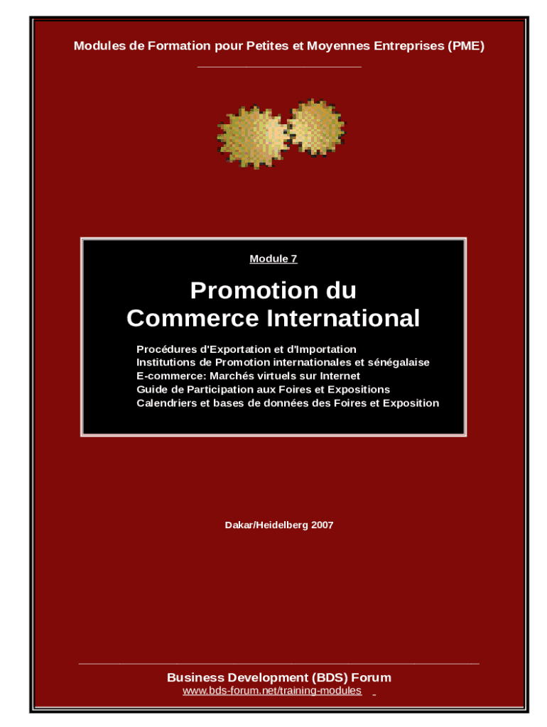 Modules DE Formation pour Petite set Doyennes Enterprises (PME)___Module 7Promotion Du Commerce International Procedures d\'Exportation et d\'Importation Institutions DE Promotion international set