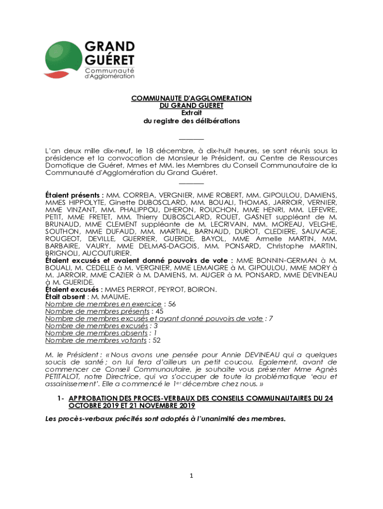 Get the free L'an deux mille dix-neuf, le 18 d - Communaut d'Agglomration du ...