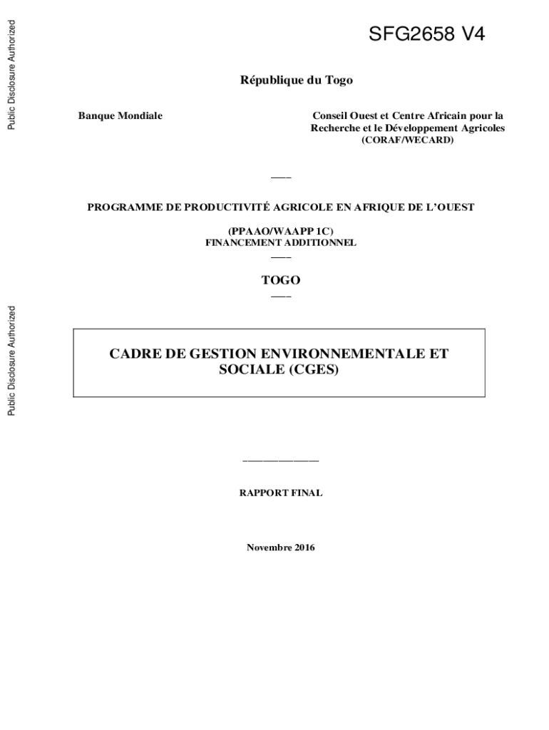 Public Disclosure Authorized Public Disclosure AuthorizedSFG2658 V4 Oblique du Togo Banquet MondialeConseil Guest et Center African pour la Recherché et LE Development Agricola (CORAL×WEC ARD) ___Program
