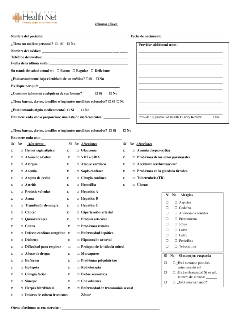 Historian clnicaNombre Del patients: ___ Tech de Nascimento: ___ Taine UN medico personal? S Provider additional notes:Hombre Del medico: ______Teflon Del medico: ______Tech de la Lima visit: ______SU