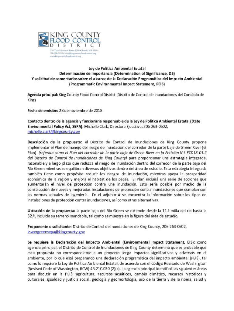 La de Poltica Ambient Estate Determination de Importancia (Determination of Significance, DS) Y solicited DE commentaries sober El advance DE la Declaration Programming Del Impact Ambient (Programmatic
