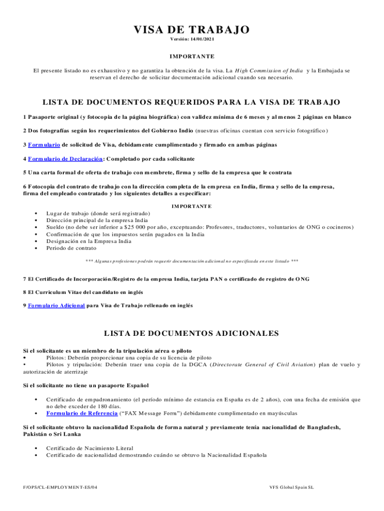 VISA DE TRIBAL Version: 14×01/2021IM PORTABLE El present list ado no BS exhaustive y no granting la obtain DE la visa. La High Commission of India y la Bajada SE reserve El each DE solicitor documentation
