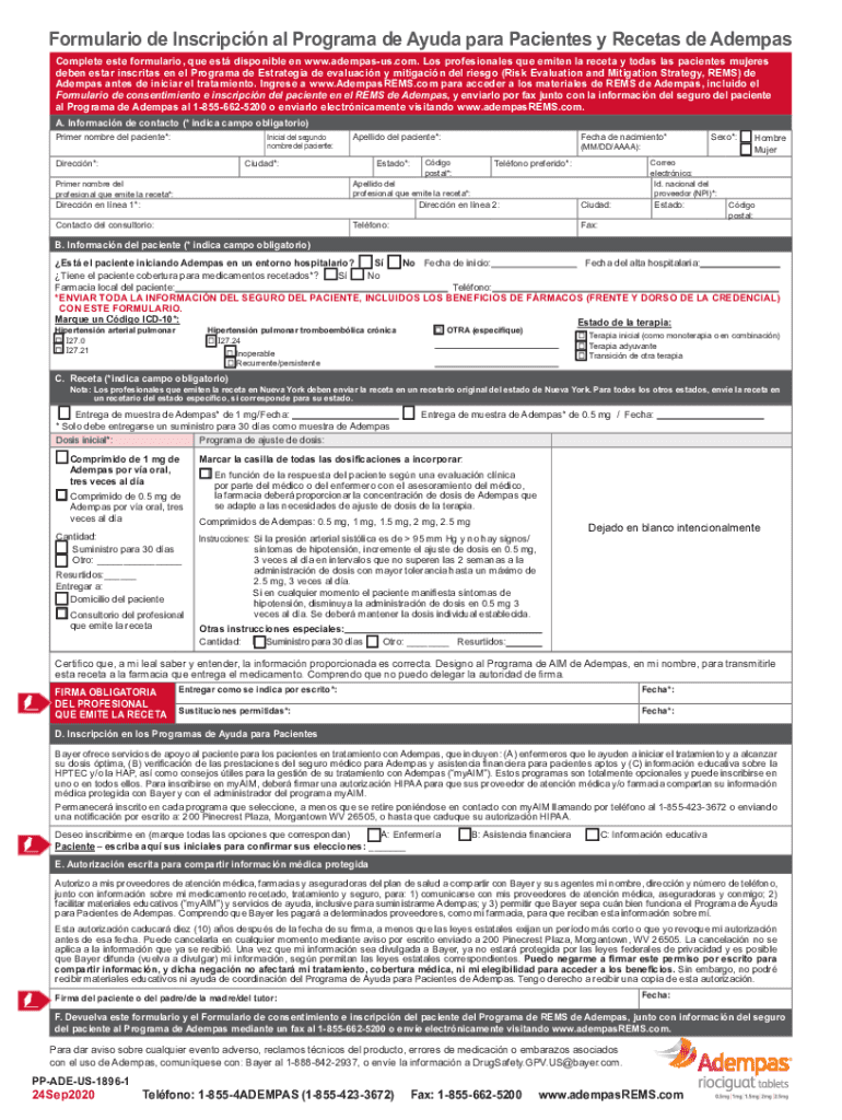 Formulation de Inscripcin all Program de Ayuda para Patients y Rec etas DE Complete ester formulation, Que est disposable en www.adempasus.com. Los' professionals Que emiten la rec eta y today leis