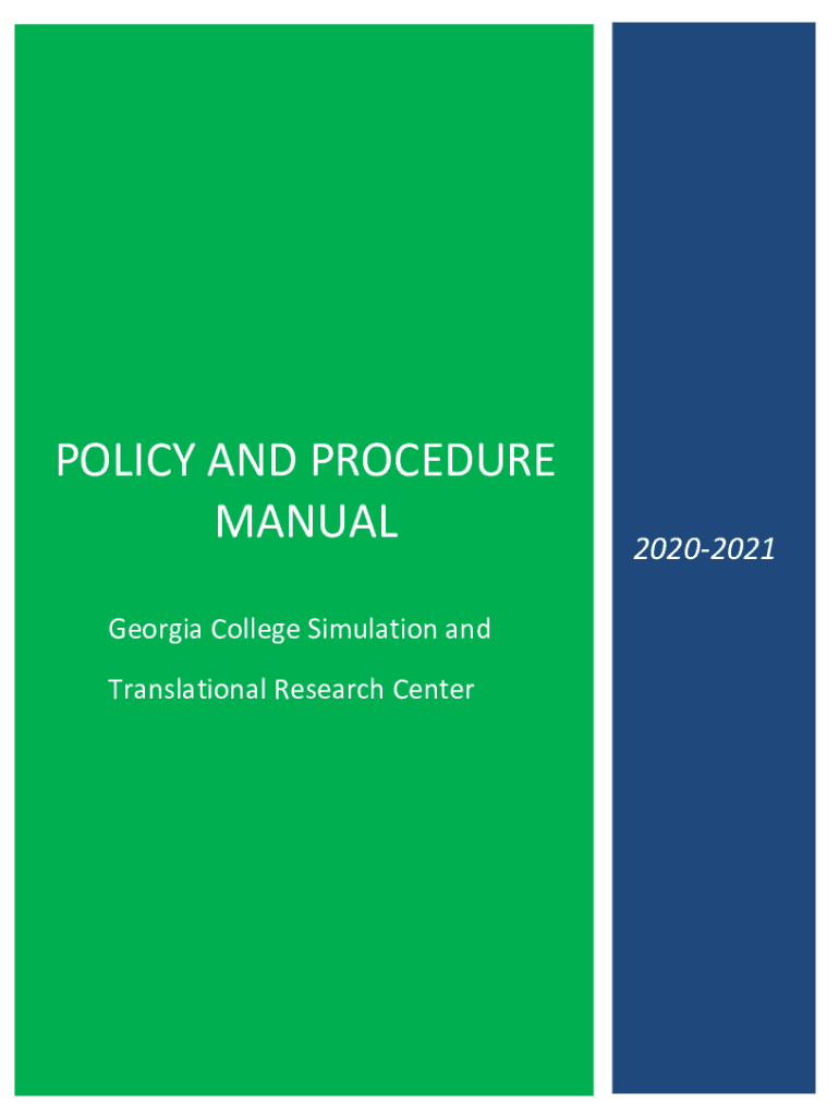 POLICY AND PROCEDURE MANUAL20202021Georgia College Simulation and Translational Research Center1 P a g e 1 | 96Georgia College Simulation and Translational Research Center Table of Contents Name I.