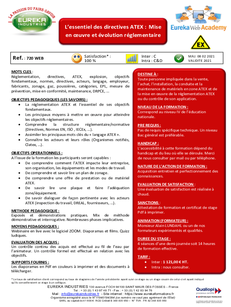 Essential DES directives ALEX : Mile en URE ET solution rglementaireRef. 720 Satisfaction* : 100 MOTS CLUES : Implementation, directives, ALEX, explosion, objectify fundamental, norms, directives,