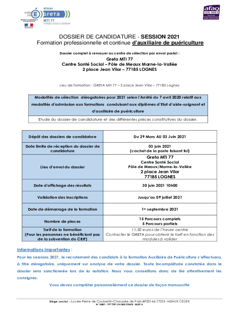 Get the free formation auxiliaire de vie greta 93 - Graficpro