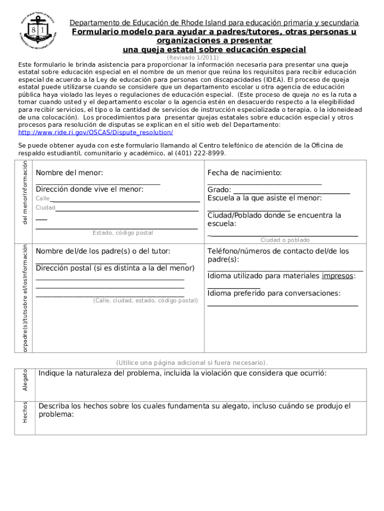 PDF ulario-para-de-quejas-de-educacin-especial ... - RI.gov template instructions