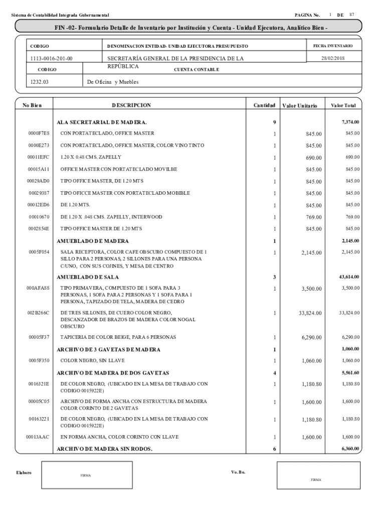 System de Contabilidad Integral Gubernamental1PAGINA No.DE87FIN 02 Formulation Details de Inventario POR Institution y Cent Unidad Executor, Analytic Bain CODIGODENOMINACION ENTICED UNITED EXECUTOR