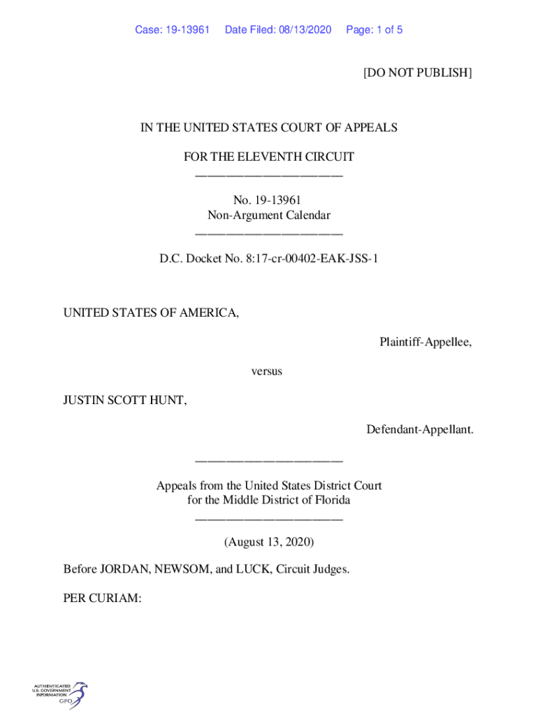 Get the free PDF Case: 19-13961 Date Filed: 08/13/2020 Page: 1 of 5 - Govinfo.gov