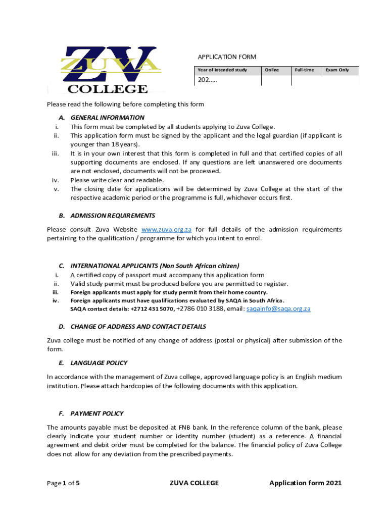 APPLICATION FORM Year of intended studyOnlineFulltimeExam Only202. Please read the following before completing this form A. GENERAL INFORMATION i. This form must be completed by all students applying