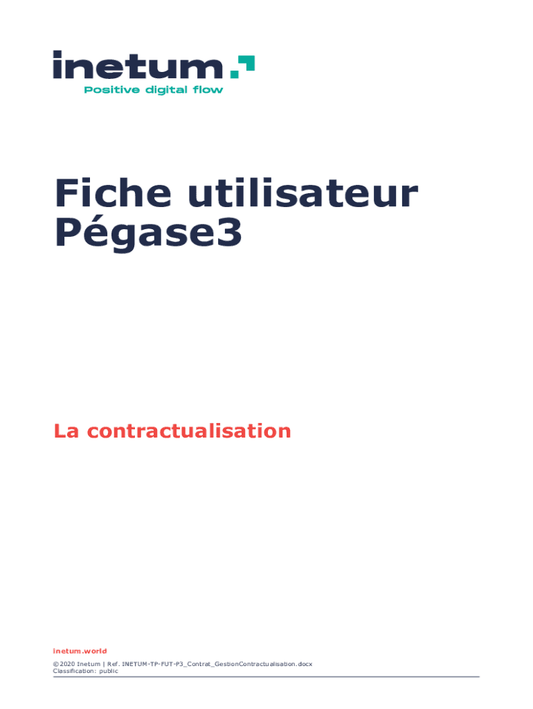 Fiche utilisateur Pgase3La contractualisationinetum.world 2020 Indium | Ref. INETUMTPFUTP3×Contract×GestionContractualisation.docx Classification: publicRvisions VersionDateObjet1.025×08/2020Version