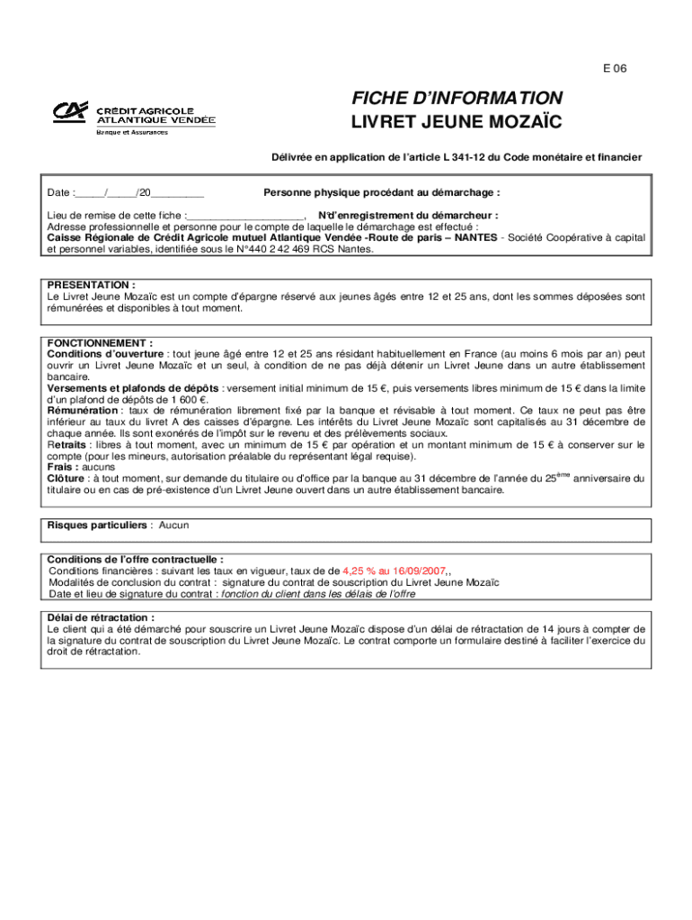 Fiche dinformation livret jeune is a document that provides information about a young person's savings account.