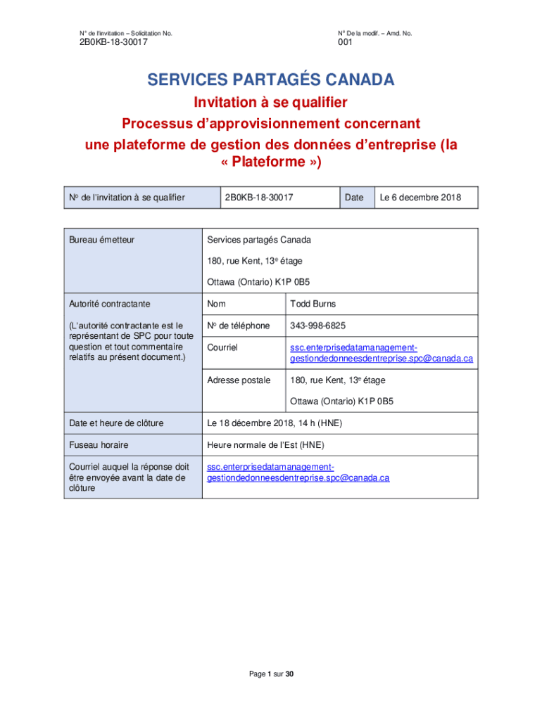 N de invitation Solicitation No. No DE la modify. AMD. No.2B0KB1830017001SERVICES PART AGS CANADA Invitation SE qualifier Processes dapprovisionnement concern ant one platform DE section DES donnés