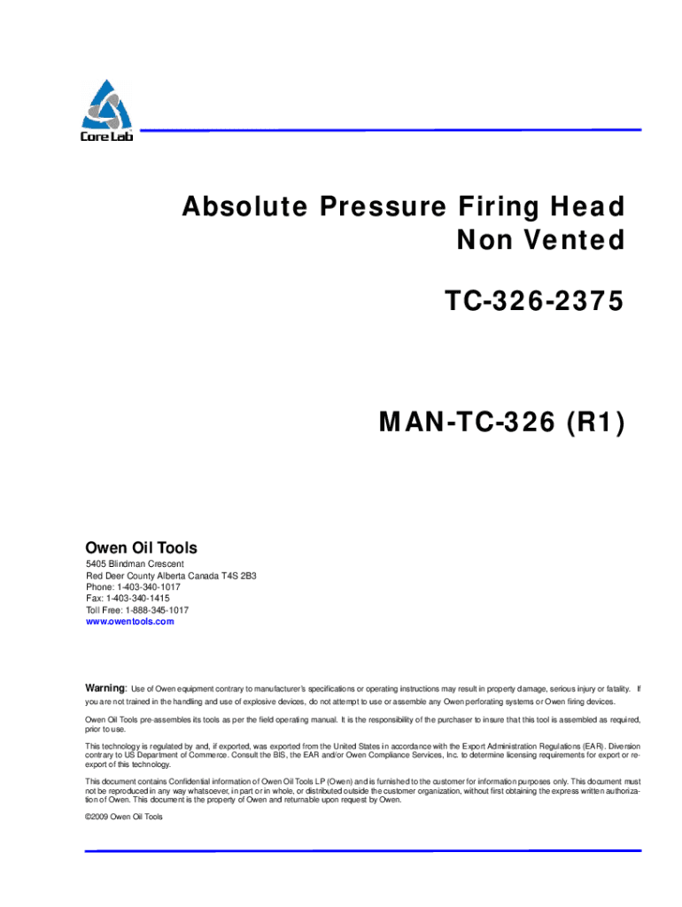 Absolute Pressure Firing Head Non-Vented TC3262375MANTC326 (R1×Owen Oil Tools 5405 Blind man Crescent Red Deer County Alberta Canada T4S 2B3 Phone: 14033401017 Fax: 14033401415 Toll Free: 18883451017