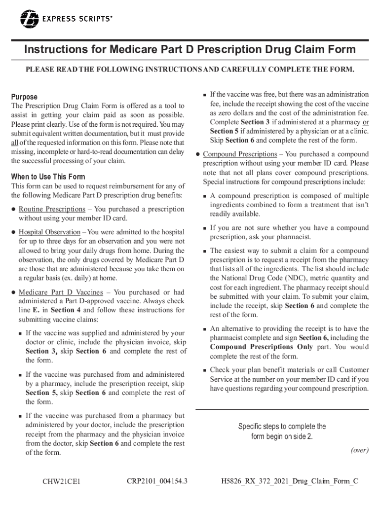 Instructions for Medicare Part D Prescription Drug Claim Form PLEASE READ THE FOLLOWING INSTRUCTIONS AND CAREFULLY COMPLETE THE FORM. PurposenThe Prescription Drug Claim Form is offered as a tool