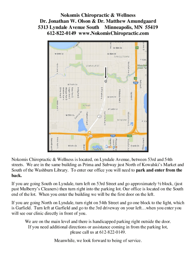 If any sections are unclear or you have any questions, don't hesitate to reach out to Nokomis Chiropractic and Wellness for assistance.