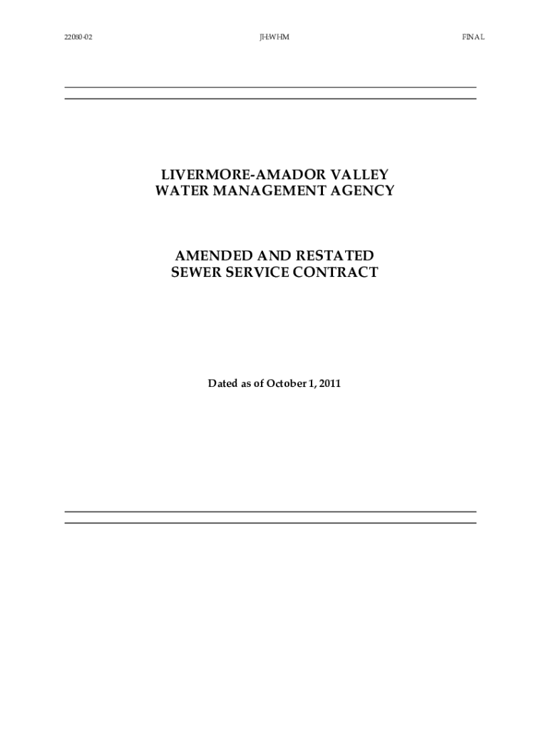 2208002JH:WHMLIVERMOREAMADOR VALLEY WATER MANAGEMENT AGENCYAMENDED AND RESTATED SEWER SERVICE Contracted as of October 1, 2011FINALLIVERMOREAMADOR VALLEY WATER MANAGEMENT AGENCYAMENDED AND RESTATED