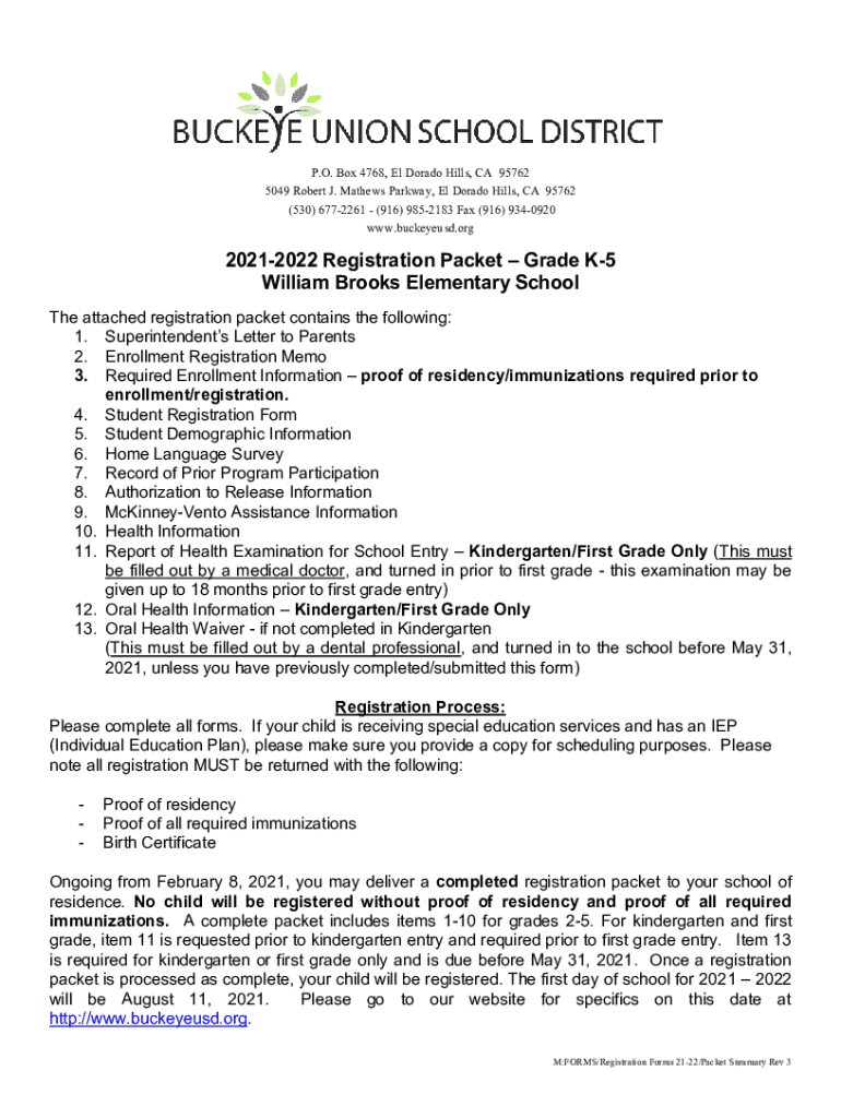 P.O. Box 4768, El Dorado Hills, CA 95762 5049 Robert J. Mathews Parkway, El Dorado Hills, CA 95762 ×530× 6772261 ×916× 9852183 Fax (916× 9340920 www.buckeyeusd.org20212022 Registration Packet