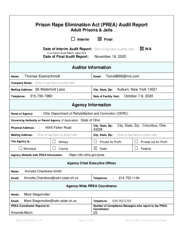 Get the free Prison Rape Elimination Act (PREA) Audit Report - Southwest ... - drc ohio