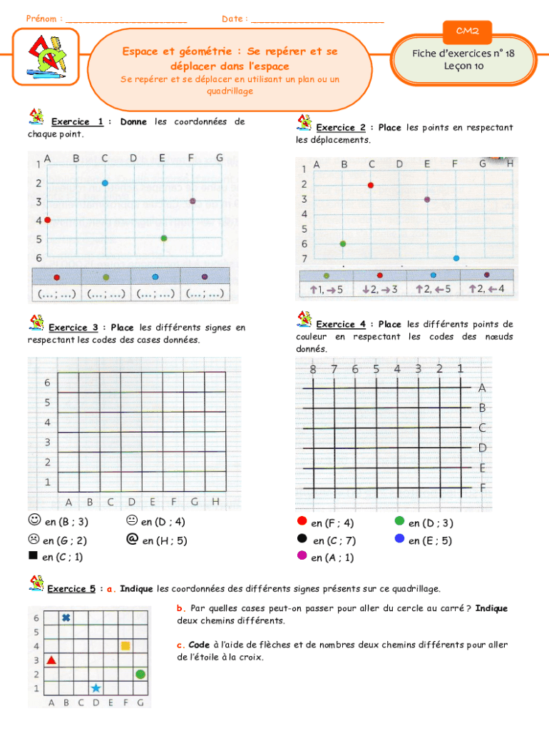 Prom : ___Date : ___CM2 Space et GovTribe : Se refer et SE placer days lespaceFiche exercises n 18 Leon 10Se refer et SE placer en militant UN plan of UN quadrille Exercise 1 : Donne LES coordinates