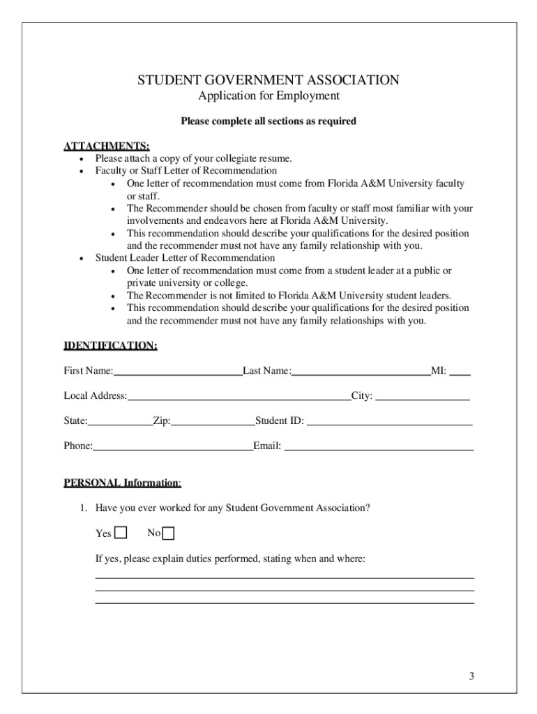 Get the free APPLICATION FOR EMPLOYMENT - Florida A&M University - sga famu
