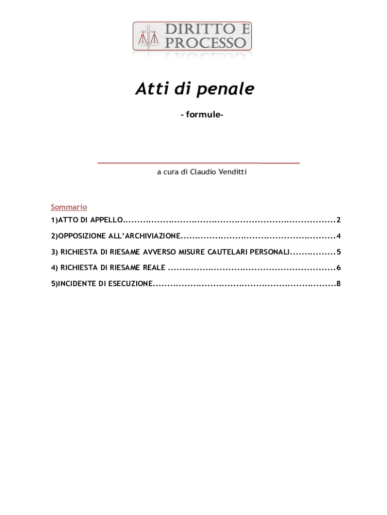 Anti DI penal formula Cuba DI Claudio VendittiSommario 1×AUTO DI APPEAL..........................................................................2 2×OPPOSITION ALLARCHIVIAZIONE......................................................4